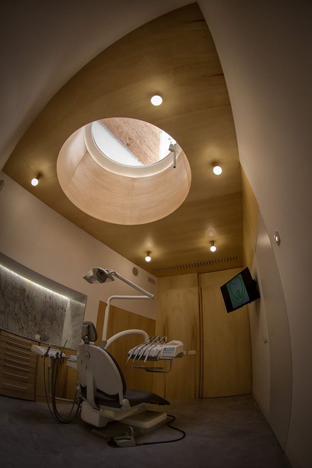 Como elemento a destacar de este proyecto, hacemos mención del gran ojo de buey, contrachapado de madera, situado en la consulta y desde que los pacientes pueden ver el cielo abierto mientras son atendidos.