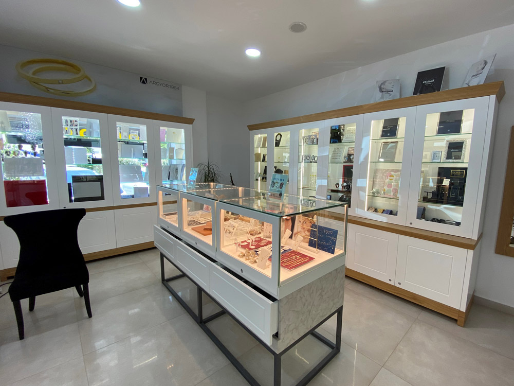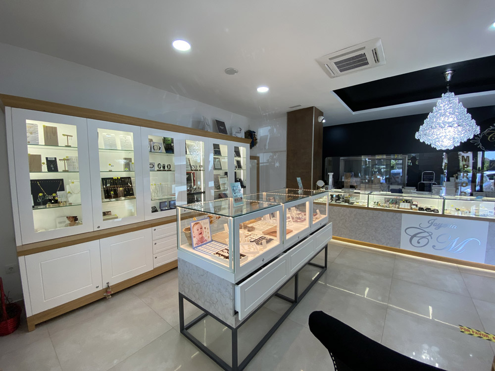 Proyecto orientado a la reforma total de un local comercial destinado a joyería en el que diseñamos y fabricamos el mobiliario y las vitrinas para generar un espacio expositivo diferente, en el que el cliente tenga acceso a todas las piezas y se genere una mayor y mejor interacción con él por parte de los dependientes.